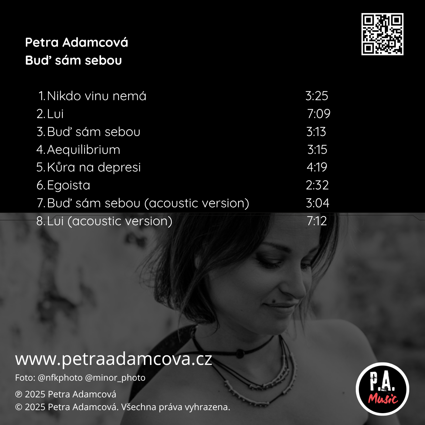 Hudební debutové album Petry Adamcové - Buď sám sebou s kódem ke stažení který naleznete na přiložené kartě v rukávu CD